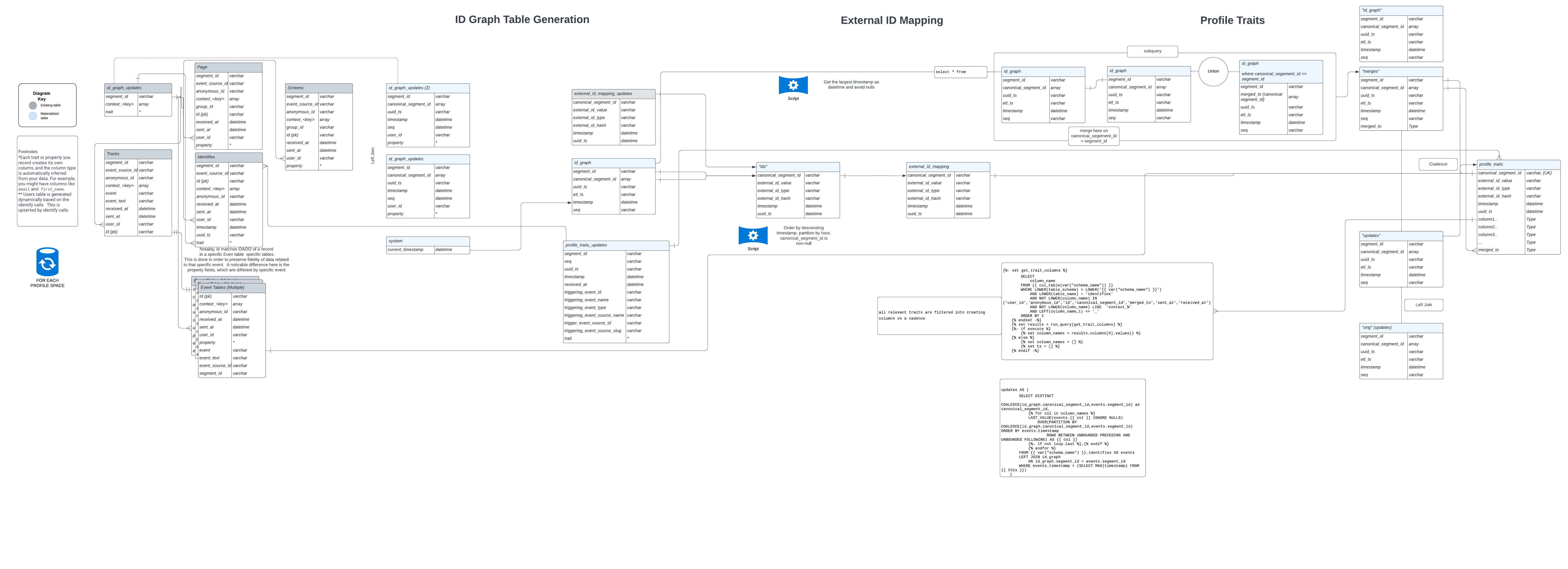 The most recent entry for each segment_id from id_graph_updates reflects this. After the four example events, id_graph would show the following: